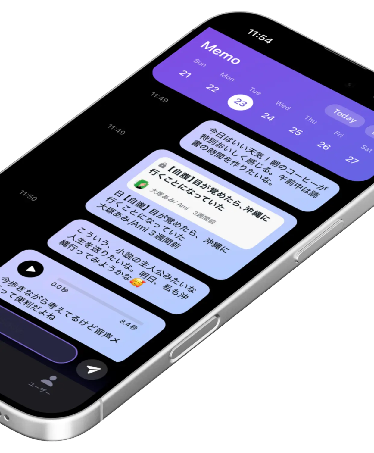 日常の思考やアイデアを"話す・書く・撮る"のどの方法でも瞬時に記録できる点が特徴です。