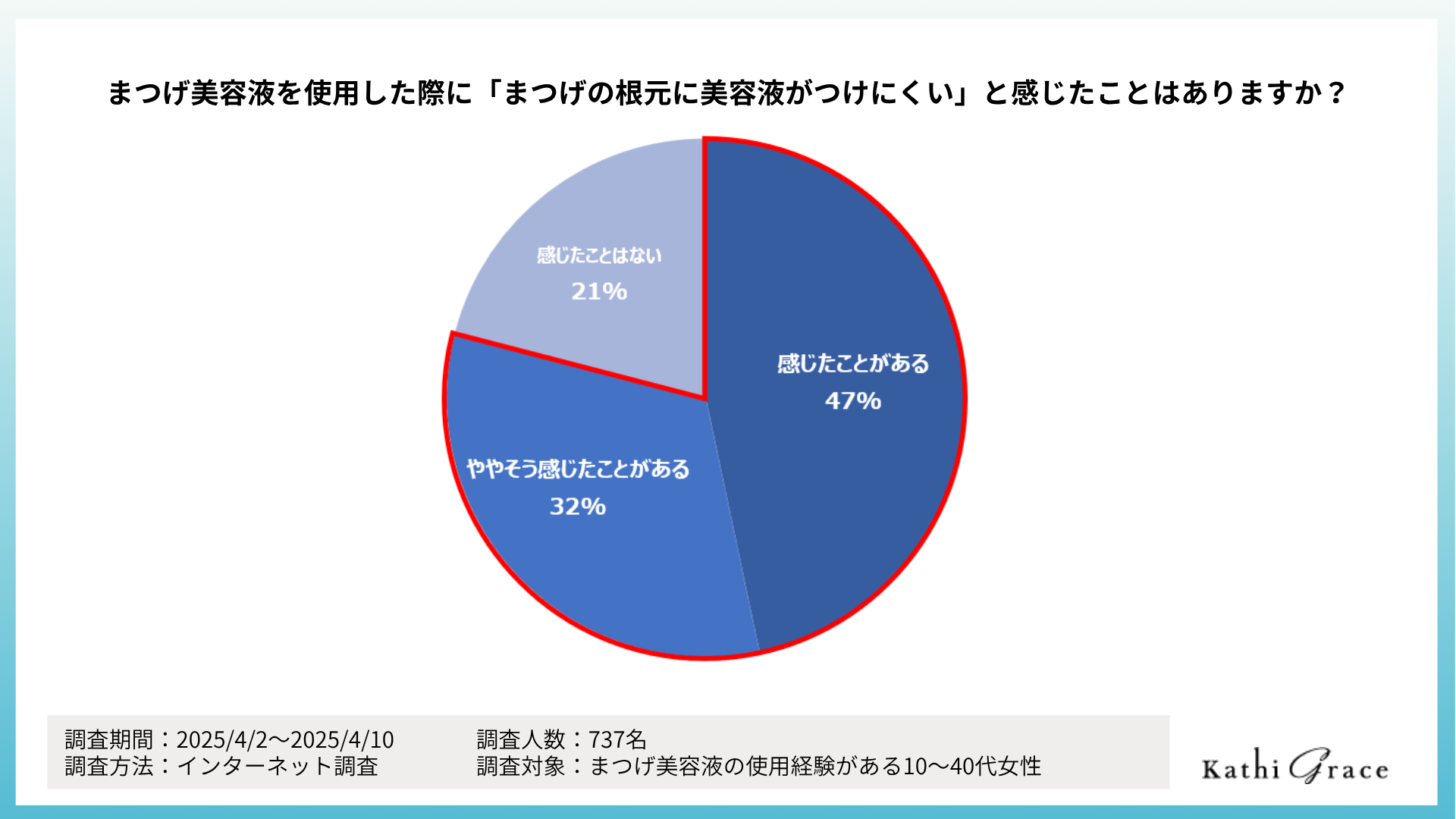 まつげ美容液の使用経験があるユーザーの多数は従来品の"塗り心地"に対して不満を感じていることが判明いたしました。まつげ美容液はチップやブラシタイプが主流ですが、従来の形状では液だれや塗布量のコントロールが難しく、目に入ってしまうリスクが大きかったようです。