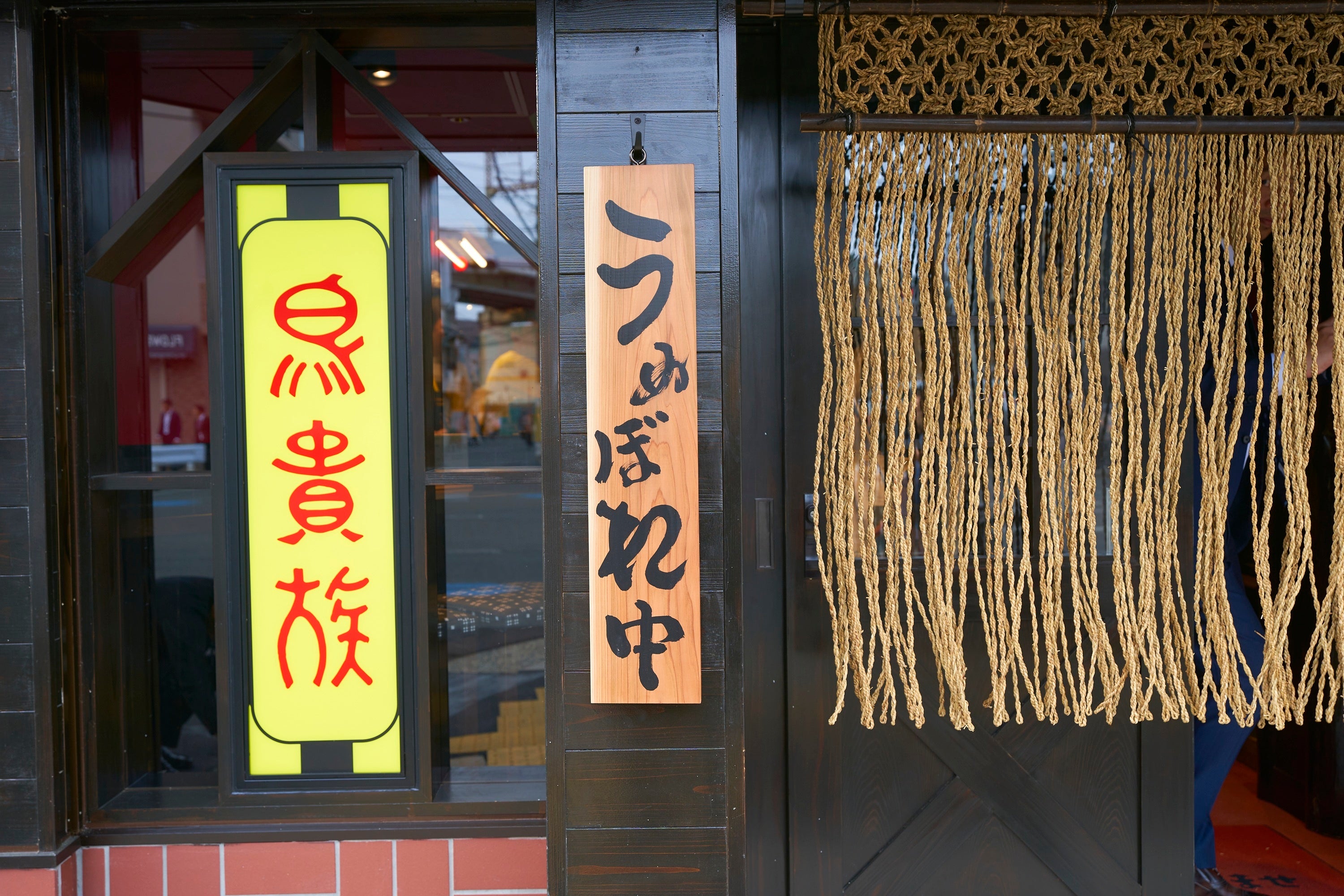創業時に大倉自らデザインした今も変わらない「鳥貴族」の文字を使い、当時の焼鳥屋としては珍しかった黄色と赤で作られた大きな看板。あえて天井を低くし、柱や梁で狭く見せる穴蔵のような店内。大倉が手書きしていたPOPなど、当時を知る方であればタイムスリップしたかのような感覚を覚えるほど、内外観を忠実に再現しています。