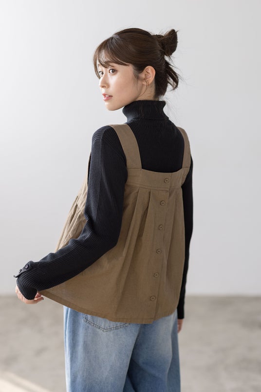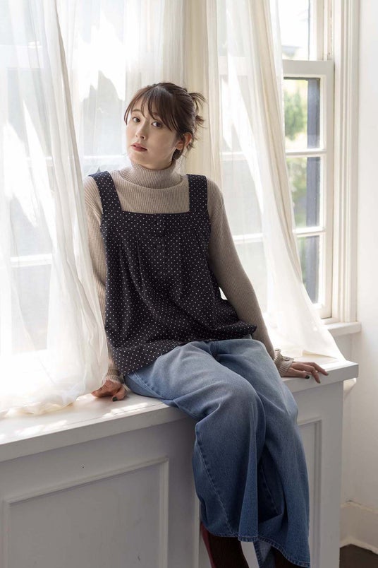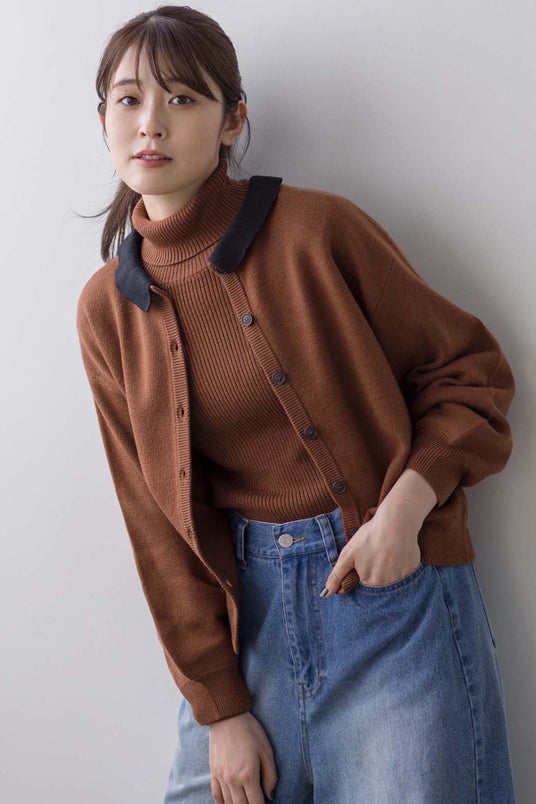 マルチWAYの襟付ニットは、ふわっと膨らんだ袖とすっきり見える丈感でシルエットにもこだわりました。また、タートルニットと同色展開のため、アンサンブルとしても着用いただけます。