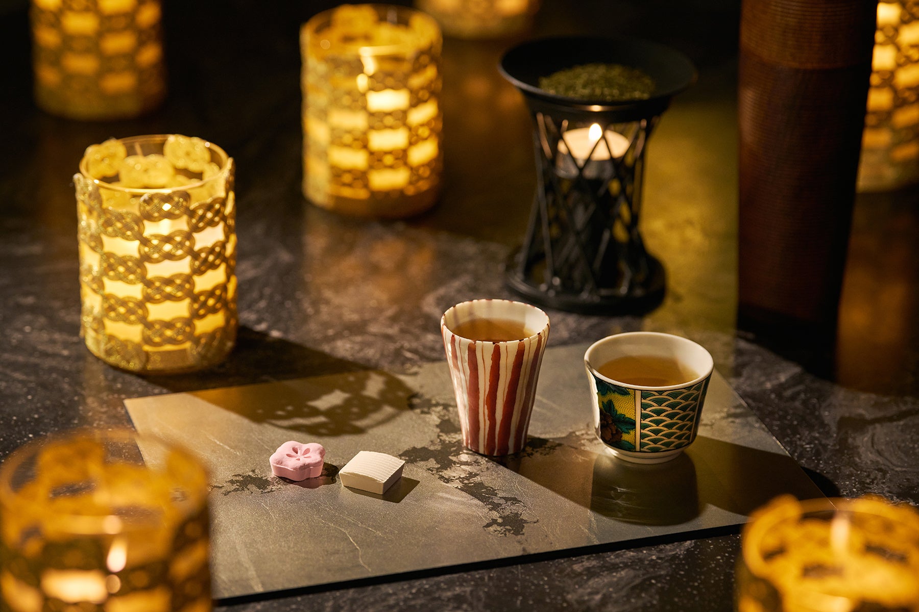 OMO3東京赤坂「花宵の休息じかん」日本三大華道のひとつ「草月流」によるダイナミックないけばなが彩る空間で、気分に合わせた香りを創る調香体験を提供。赤坂の老舗茶舗「土橋園」のハーブをブレンドした煎茶や、華やかな香りに包まれるバスソルトで、心安らぐ夜を演出します。