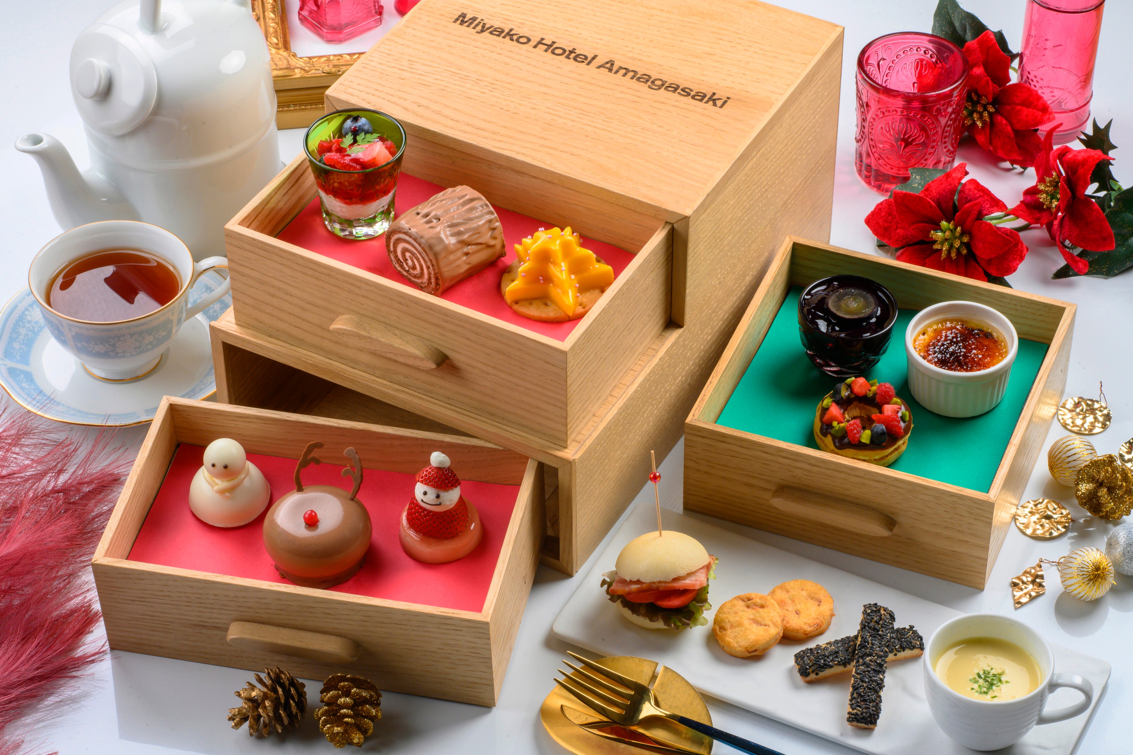 【都ホテル 尼崎】心ときめく冬のご褒美「クリスマスアフタヌーンティー」を販売 オリジナルの木箱を開けるとクリスマスの世界