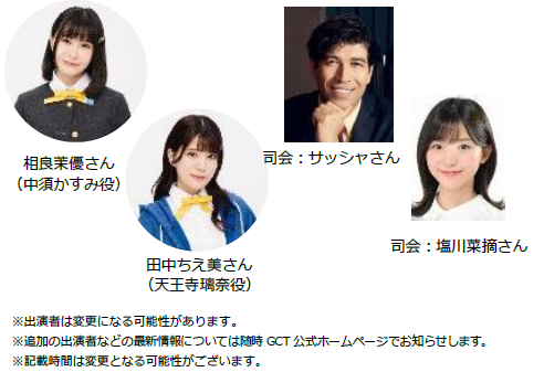 ※出演者は変更になる可能性があります。 ※追加の出演者などの最新情報については随時GCT公式ホームページでお知らせします。