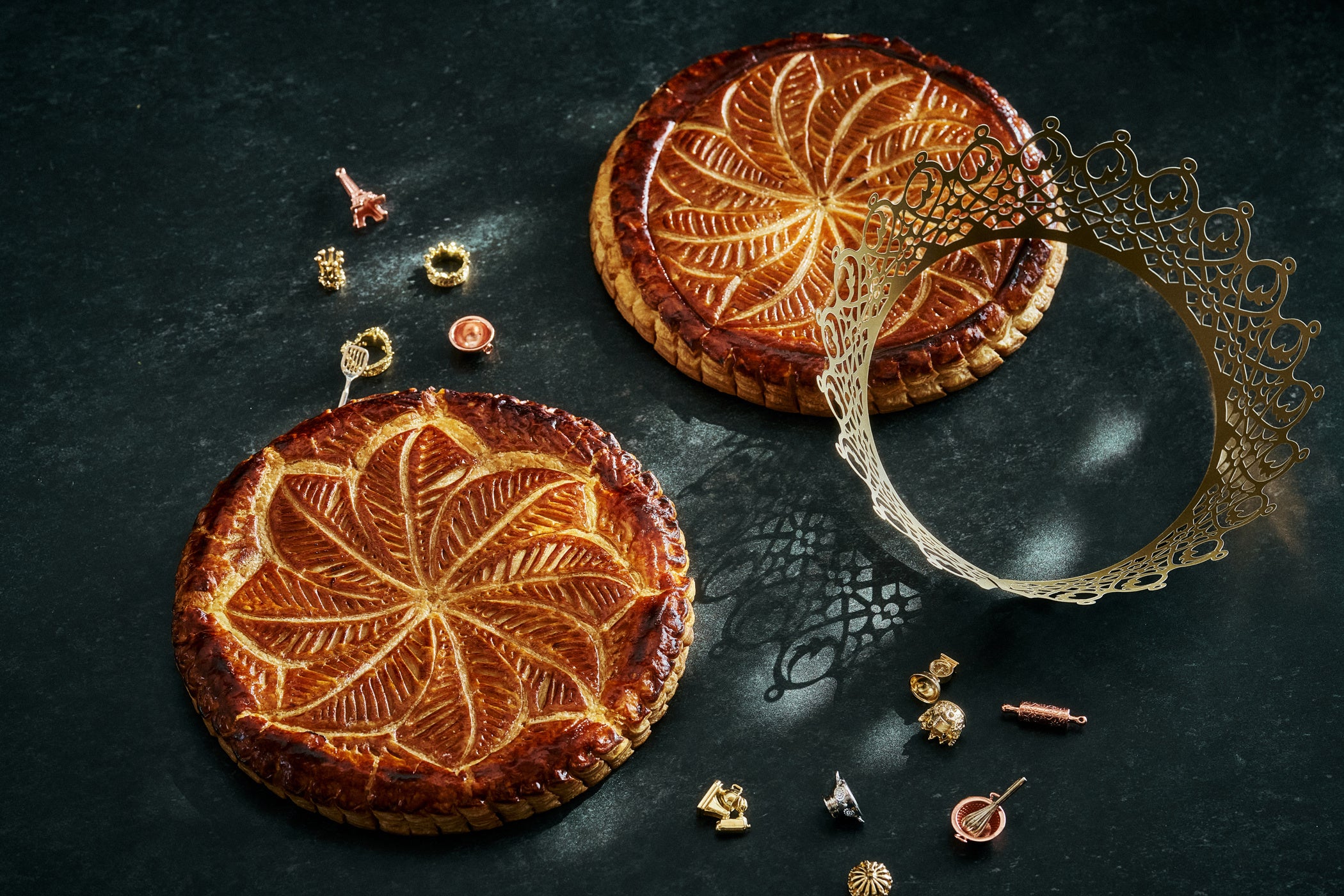 フランスで新年に食べられる『王様のお菓子』という意味を持つ、香ばしいパイ生地が特徴のフランスの伝統菓子です。アーモンドクリームがたっぷりと入った折りパイの中に、"フェーヴ"と呼ばれる陶製の小さな人形を入れて焼き上げ、1月6日のキリスト教の祭日「公現節(エピファニー)」に家族で切り分けて食べます。"フェーヴ"が当たった人は、王冠をかぶり同席者から祝福され、その年の幸運が訪れると言われています。グランド ハイアット 東京では、 "フェーヴ"の代わりにアーモンドを入れて焼き上げ、"フェーヴ"は別途お渡しいたします。勝利のシンボルとされる月桂樹の美しいデザインを一つひとつ丁寧に飾り包丁で描くパイとともに、美味しく新年の運試しをお楽しみください。