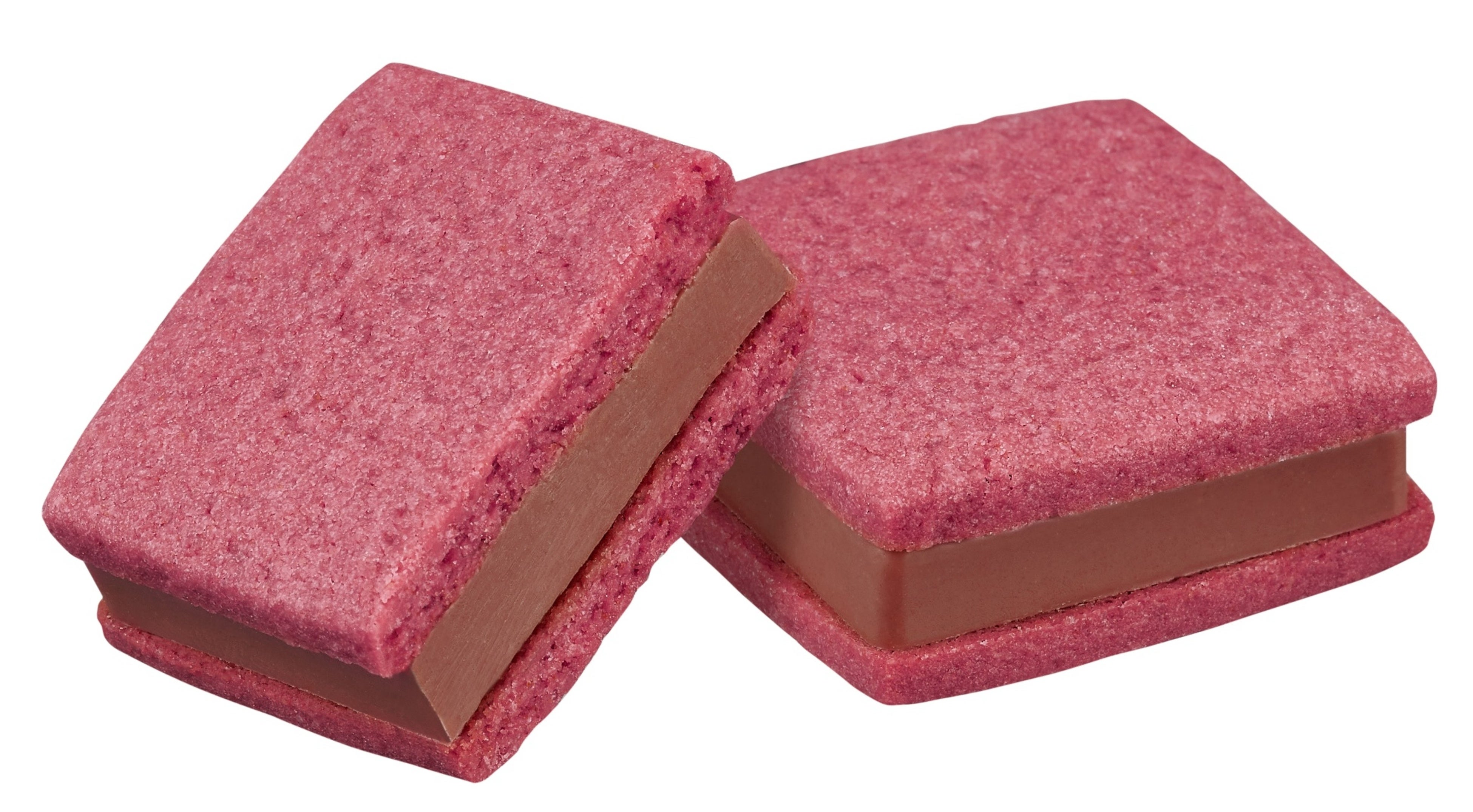 フルーティな味わいのルビーチョコレートガナッシュを苺パウダー入りのサクッとしたサブレでサンドしました。ルビーチョコレートのほんのりとした酸味がやさしく広がります。