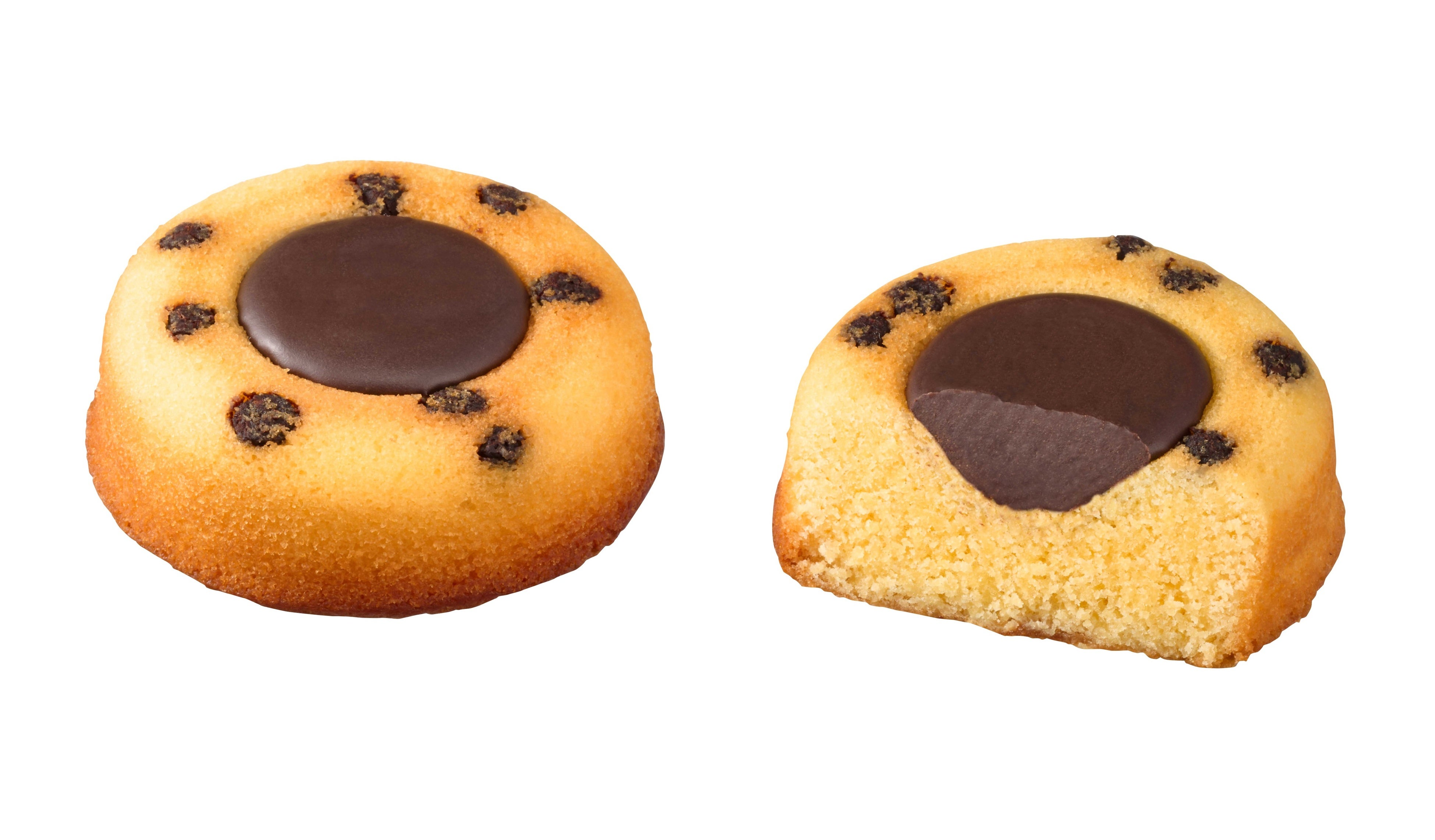 アーモンドパウダーを混ぜた生地をしっとりと焼き上げ、真ん中になめらかなチョコレートガナッシュを流し込みました。優しい甘さのふんわりとした生地に浮かぶほろ苦いチョコチップがアクセントになっています。