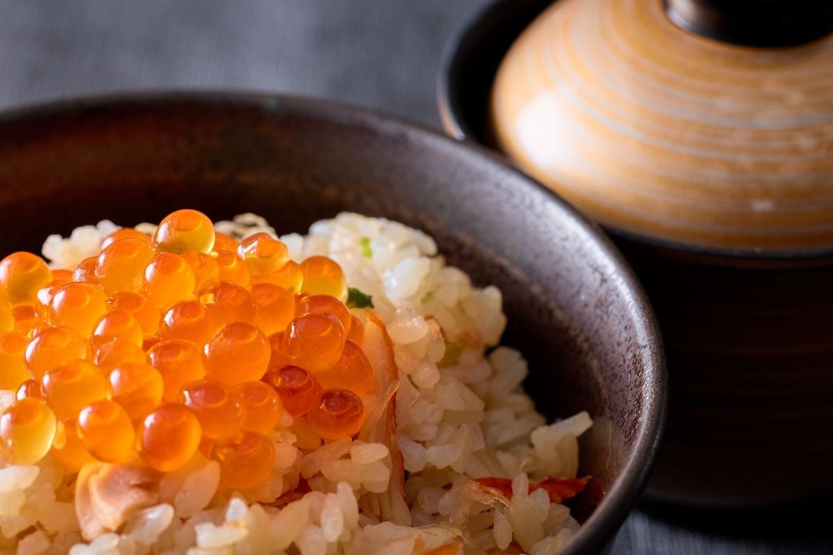 ずわい蟹と鮭の炒めご飯 イクラをのせて