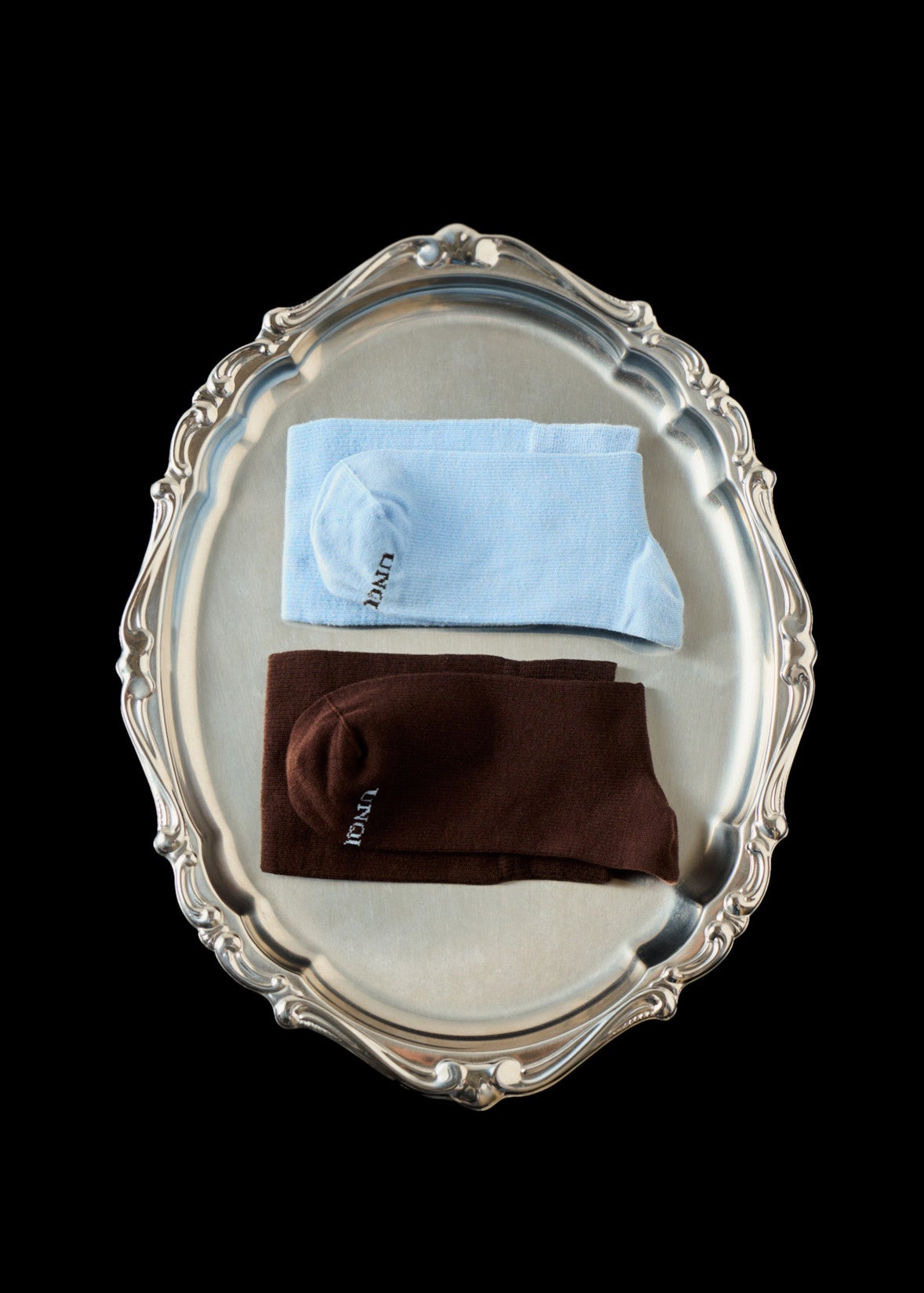 SOLITUDE SOCKSではブランドのテーマカラーであるskyblueをセレクト。