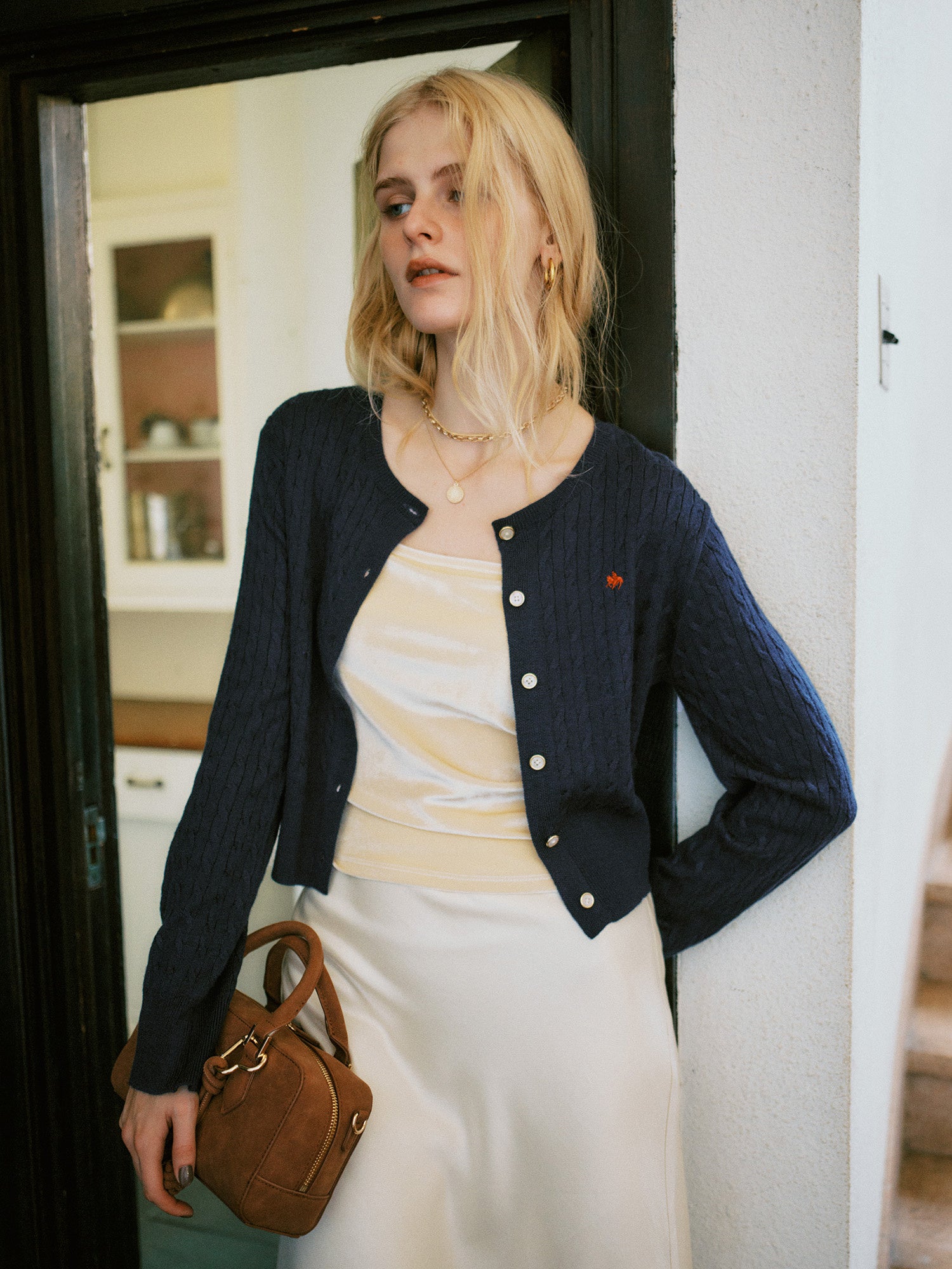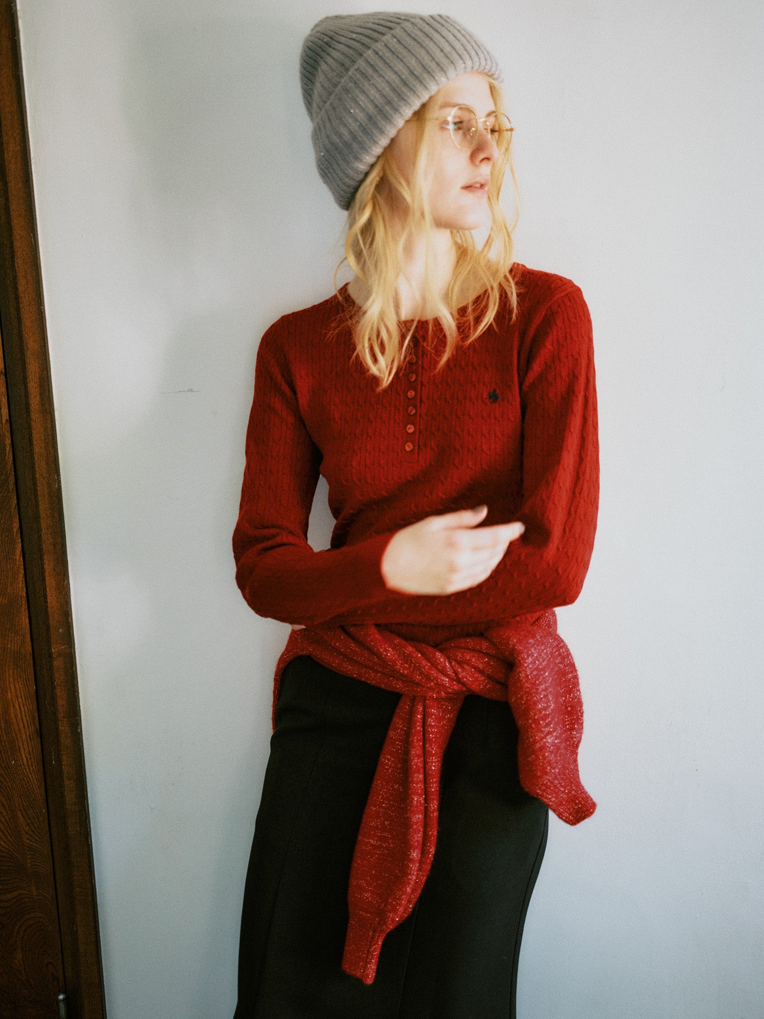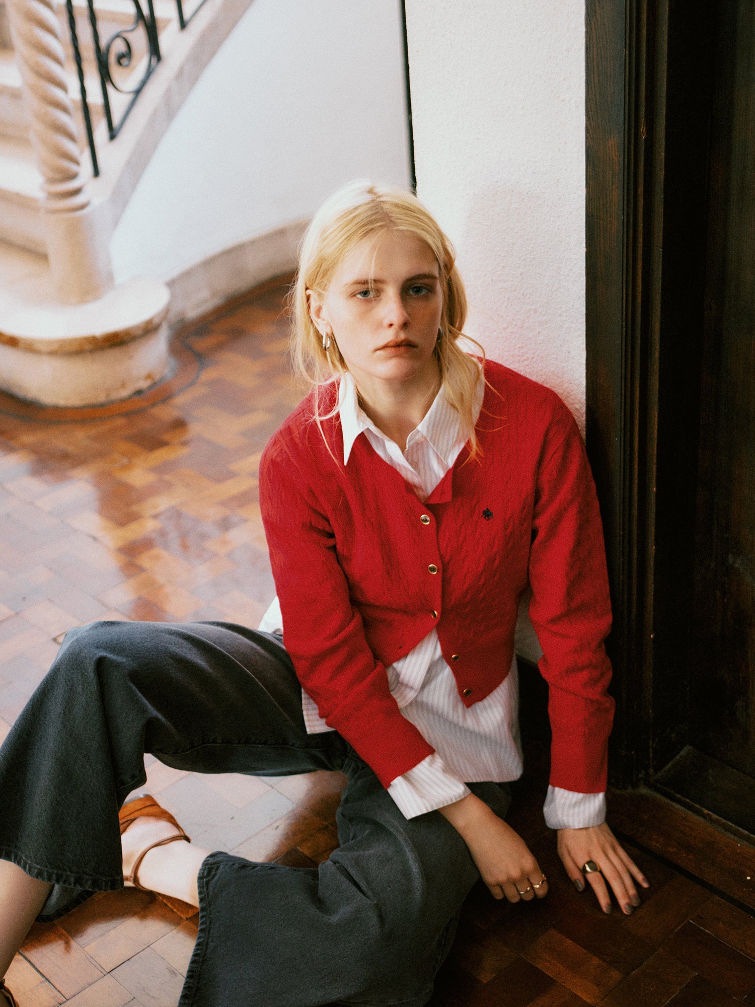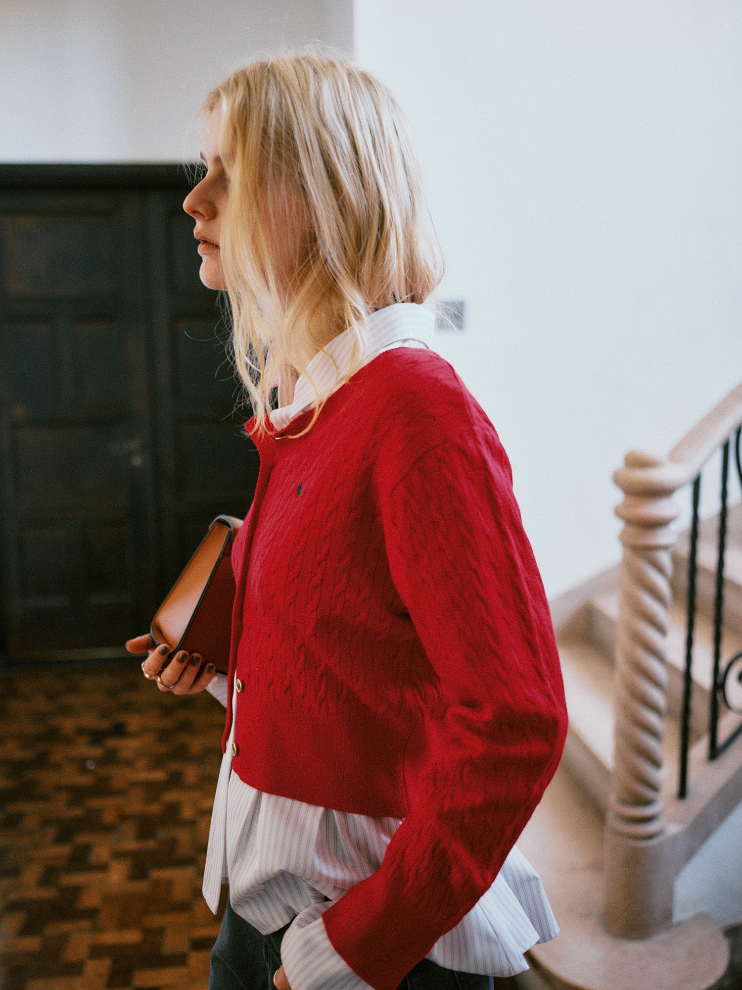 人気のミニケーブルカーディガンに、秋冬らしい温かみのあるレッドが新登場。