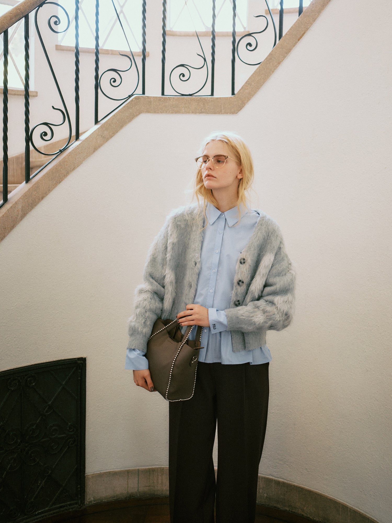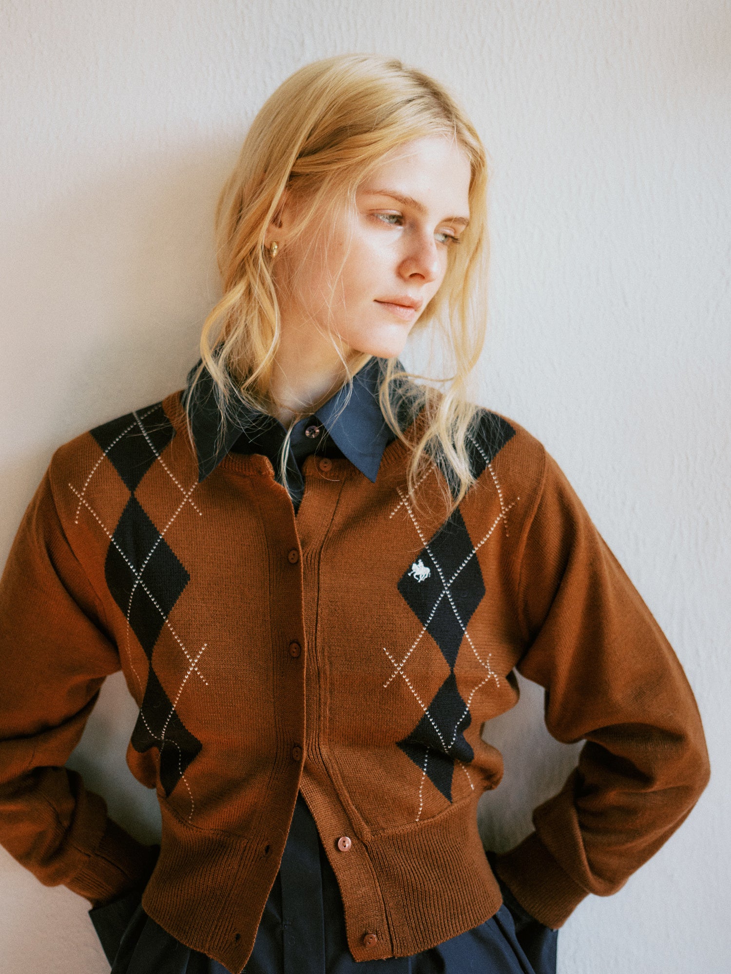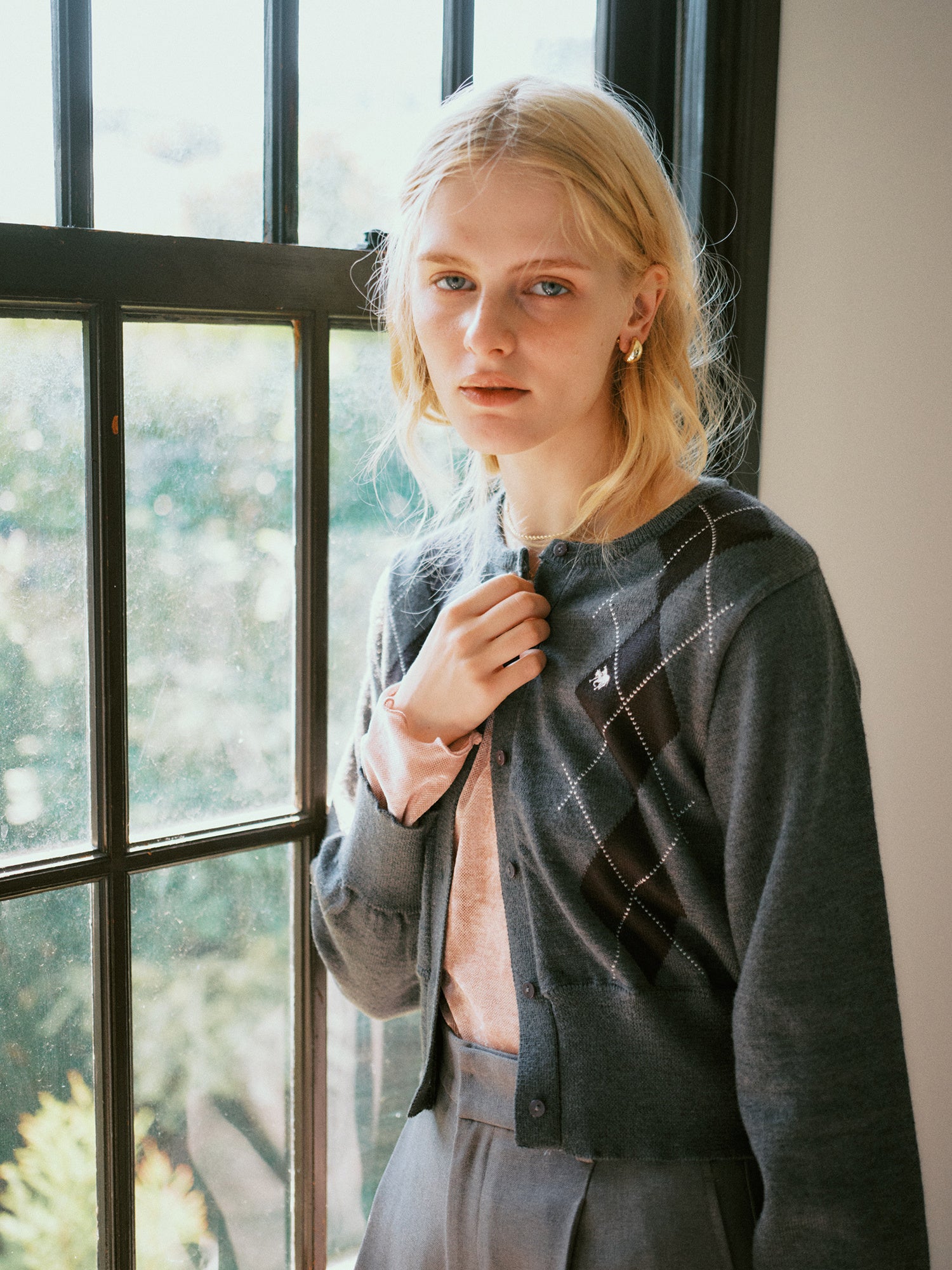 今季注目の"アーガイル柄"をVISらしくアップデート。ガーリーになりすぎない絶妙なサイズ感で、カーディガンとしてもトップスとしても着回し可能。デイリーに取り入れやすいキャメルとグレーの2色展開。