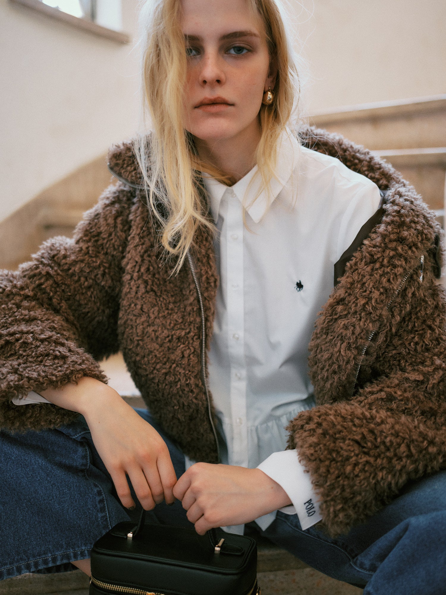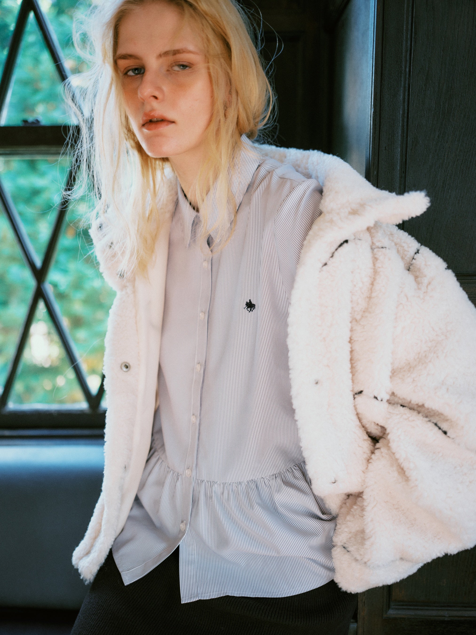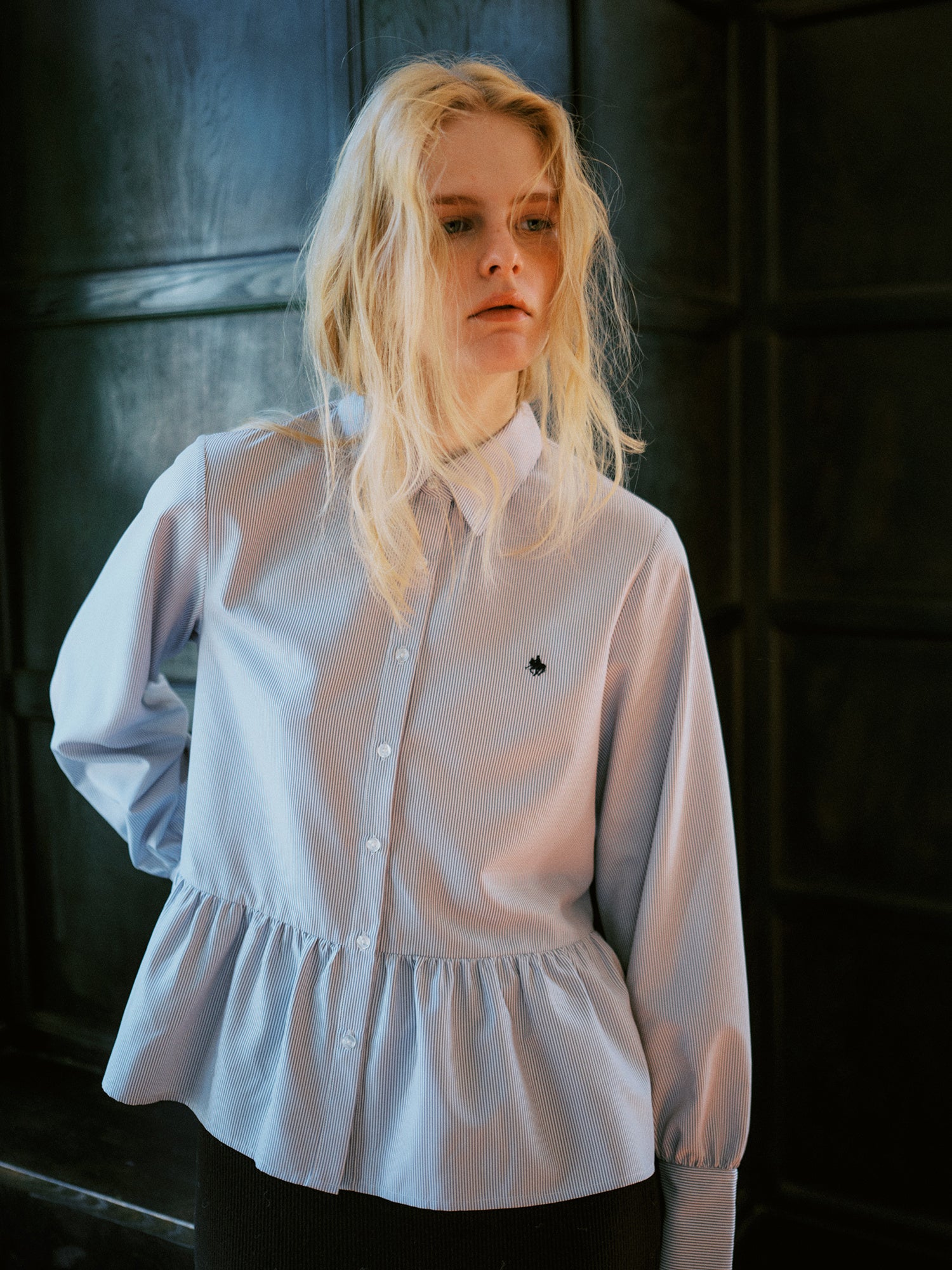 一枚で着映える、スタイルアップ効果抜群のペプラムシャツ。胸元のPOLO BCSロゴ刺繍がアクセントとなり、シンプルながら華やかな印象に。