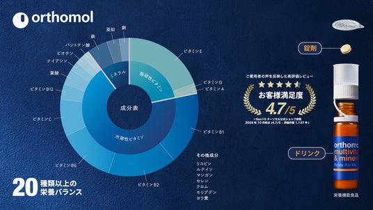 MST株式会社(本社:東京都渋谷区、代表取締役:湯川正人)が日本総代理店を務める、ドイツ発のプレミアムサプリメントブランド「Orthomol(オーソモル)」は、世界初の取り組みとして「オーソモル マルチビタミン&ミネラル 1日分」を2025年下旬を目処に、国内のコンビニエンスストアを中心に販売開始予定。