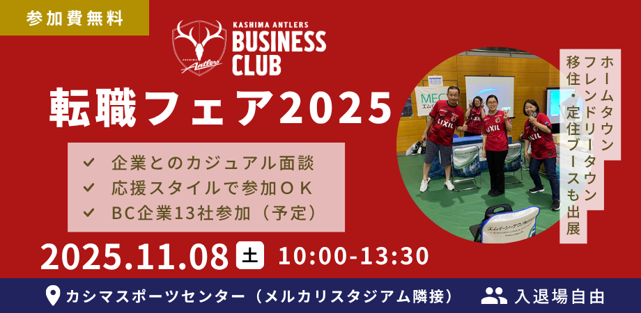 【応援スタイル参加OK】あなたの「好き」が仕事になるチャンス!アントラーズと地域企業が仕掛ける「ANTLERS BUSINESS CLUB 転職フェア2025」開催(11/8)