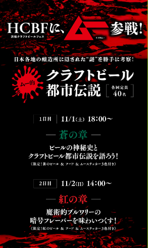 第2回 11月2日 14:00~『紅の章 魔術的ブルワリーの暗号フレーバーを味わいつくす!(限定!紅のビール&フード&ムーステッカー3色付き)』