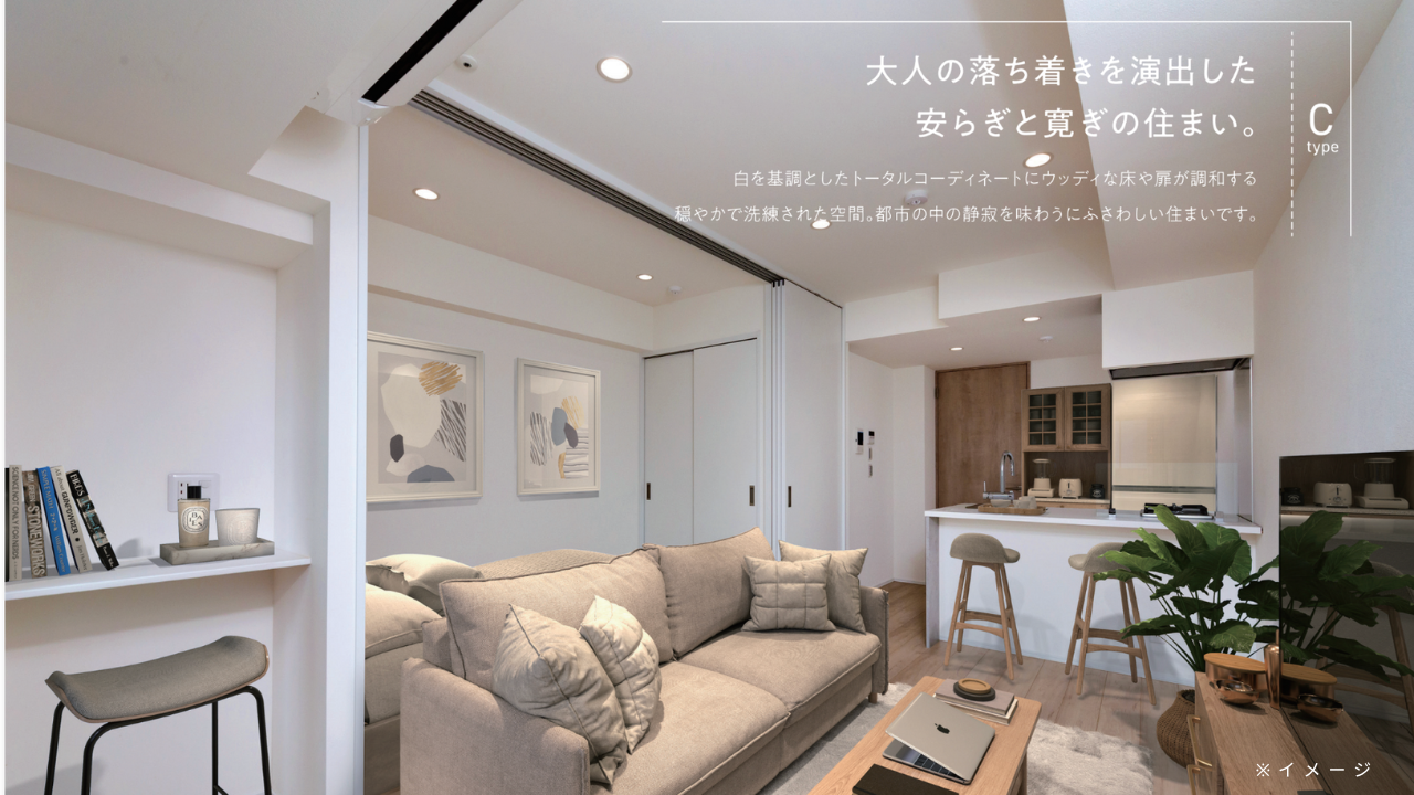 エントランスホールや共用廊下は、静謐なコンクリート打放しとし、間接照明の穏やかな光に浮かぶシンプルな空間が、訪れる人や住む方を穏やかに迎える空間を実現しました。また、共用部だけでなく住戸内装もデザイン性と機能性を両立させ、快適な都市生活を支える設計となっています。「SYFORME MACHIDA」は、利便性・快適性・美しさを兼ね備えた次世代型都市型レジデンスとして、働く世代の暮らしを支える新たなスタンダードを提案します。