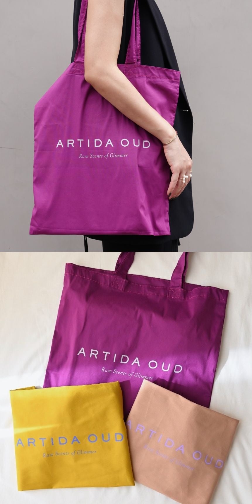 LUCUA大阪店のオープンを祝して、税込22,000円以上お買い上げの方に先着でオリジナルトートバッグをプレゼント。ブランドらしいオリエンタルな香りを纏ったこだわりのカラーは3色。
