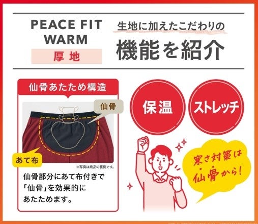 ピースフィット ウォーム 厚地【★★☆】…機能:保温・吸湿発熱・静電気対策・ストレッチ