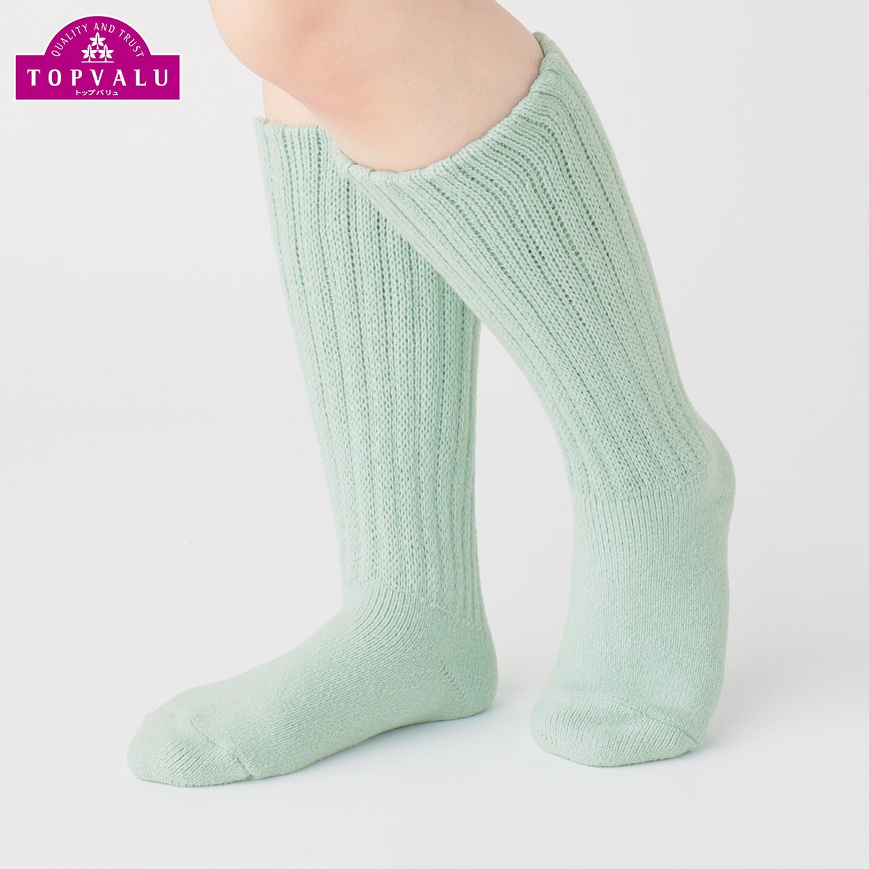レッグ部はリブ編みの二重構造で生地と生地との間に空気の層ができることでより高い保温効果があります。また伸縮性にも優れており、ゆったりとした履き心地です。フット部はパイル編みでふんわりクッション性がありあたたかく足を包み込みます。