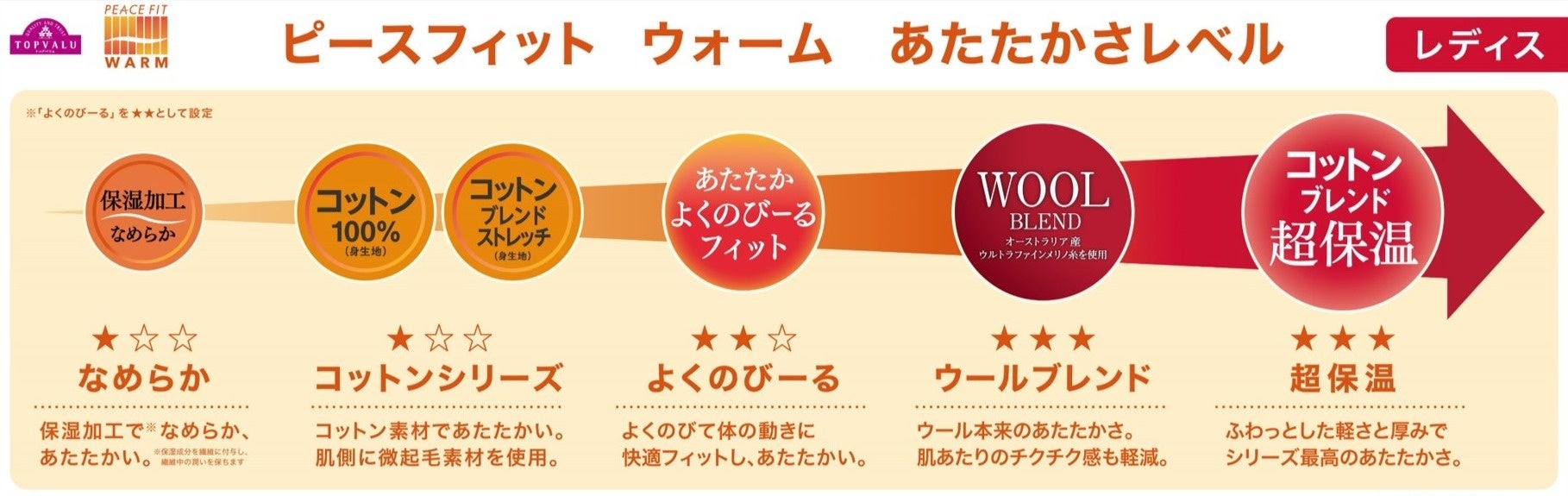 【トップバリュ ピースフィット ウォーム商品一例】