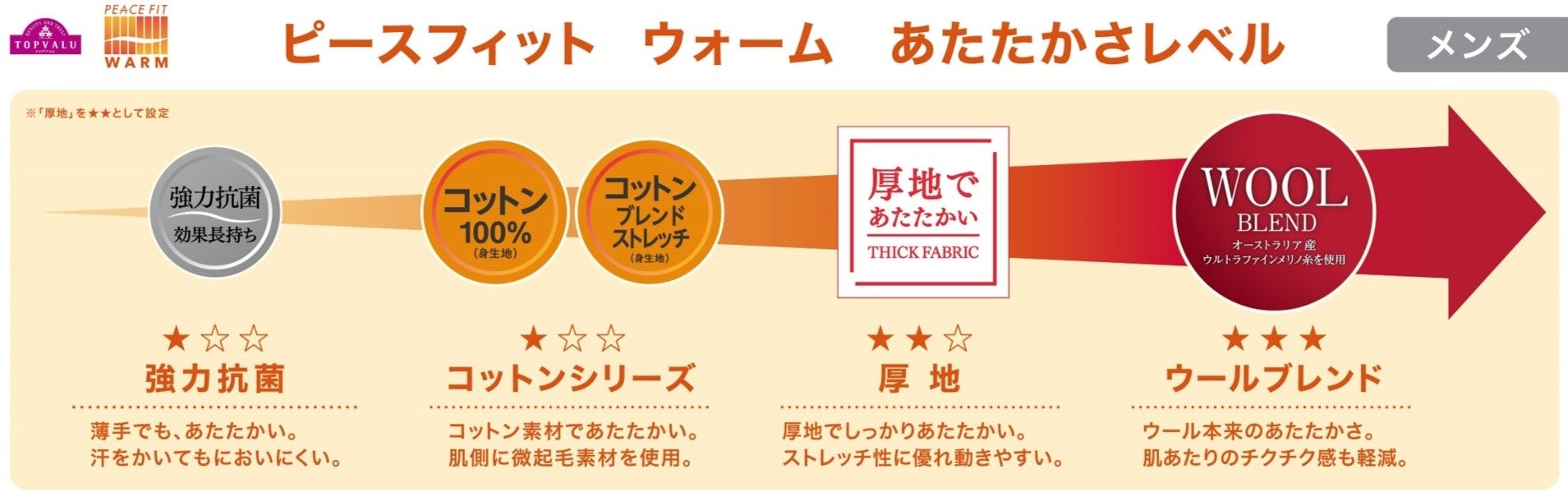 (メンズ)ピースフィット ウォーム 厚地【★★☆】
