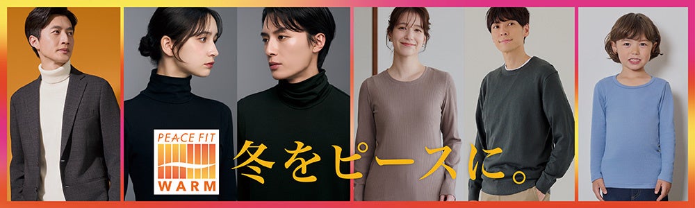 ピースフィット ウォームは、"心地よい「あたたかさ」"を提供するイオンの秋冬向け機能性アイテムです。レディス・メンズ・キッズのインナーやメンズのセットアップ、大判ストールなど幅広く品揃えしています。