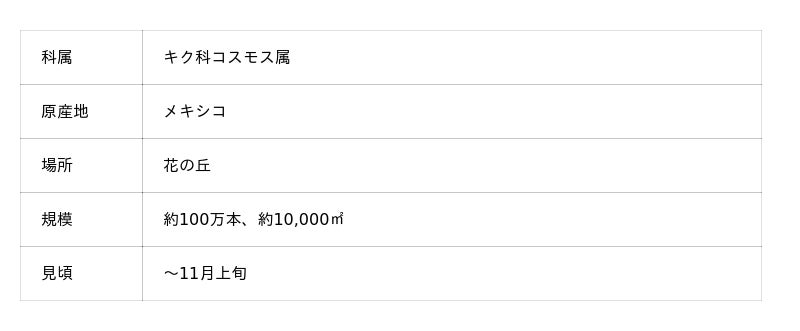 今年はさらに、黄色の秋咲きコスモス「イエローキャンパス」や「赤ソバ」など、新たな花畑も登場中。こちらもあわせてお楽しみください。