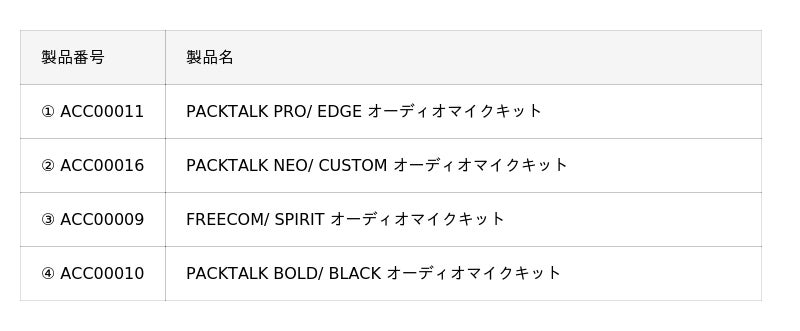 1. PACKTALK PRO/ EDGE オーディオマイクキット