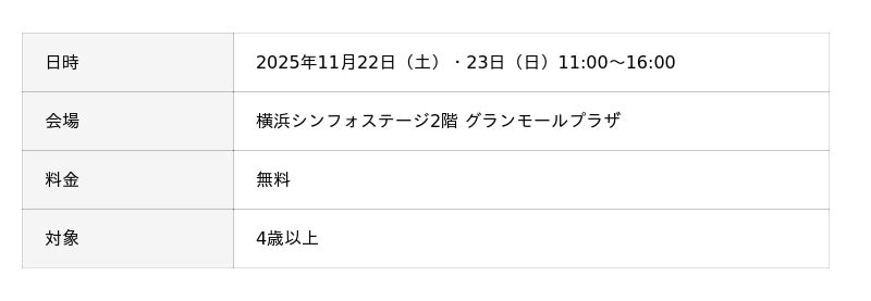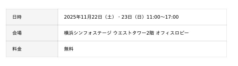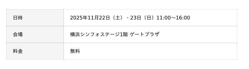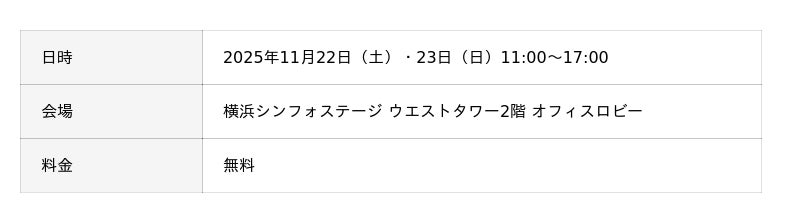 開催日:2025年11月22日(土)・23日(日) 会場:横浜シンフォステージ