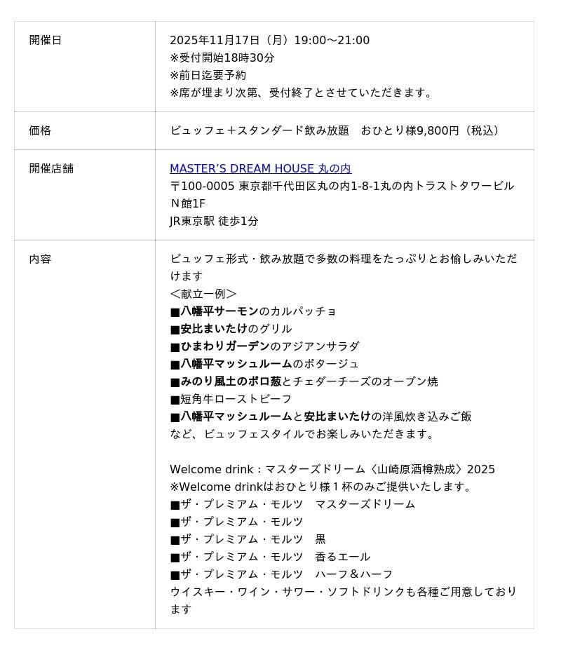 一夜限りのコラボレーションイベント「岩手県八幡平市×MASTER'S DREAM HOUSE in Marunoucih~プレミアムビールとのマリアージュ」開催