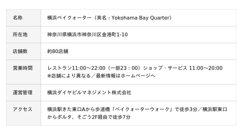 ※イベント内容は予告なく中止・変更となる場合があります。最新情報は横浜ベイクォーターホームページをご確認ください。