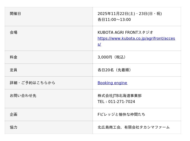 11/22(土)・23(日)北海道米の原点「赤毛米」を味わう特別体験イベント、北海道ボールパークFビレッジ・農業学習施設「KUBOTA AGRI FRONT」で開催!
