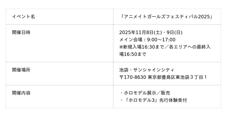 「アニメイトガールズフェスティバル2025」Gugenka出展決定 販売ラインナップ公開&ホロモデル新バージョン体験先行受付