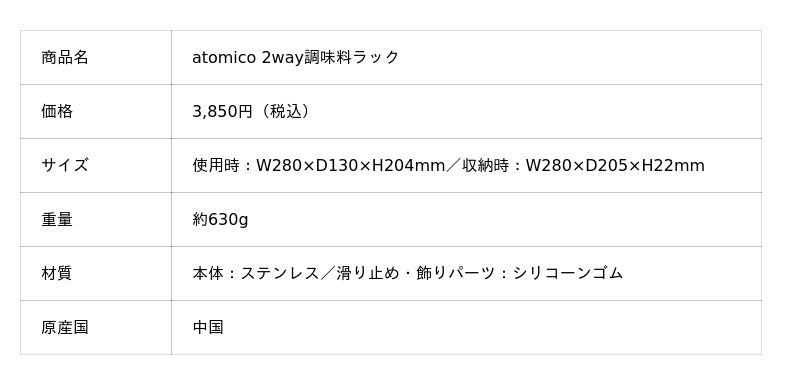 【新商品】置くだけで整う。atomico 2way調味料ラック登場