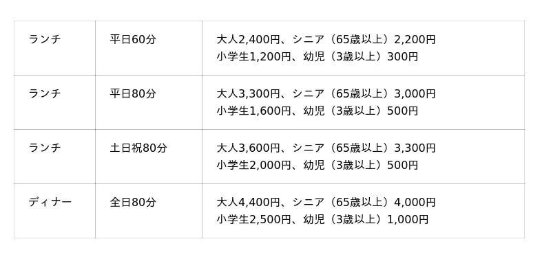 大人+600円、小学生+300円、未就学児・幼児 無料