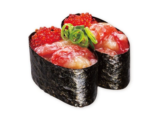 今回のフェアでは、豪華食材のカニを使った商品が多数登場します。くら寿司で取り扱う本ズワイガニや丸ズワイガニは、カニ本来の旨みを逃がさないよう、水揚げ後すぐに茹でるなどの特別な加工を施しているのが特徴で、このうち、「本ズワイガニ二種盛り」は、"カニの王様"といわれる本ズワイガニの濃厚な旨みが凝縮された"開き"と、ふんわりと柔らかく、噛むごとに上品な甘みが広がる"かに身"の2種の味わいを一皿で食べ比べていただけます。また、「丸ズワイガニ二種盛り」は、"棒肉"と1 尾からわずか 2 本しか取れない"爪下"を一皿に盛り合わせました。丸ズワイガニならではの濃厚な旨みと甘み、豊かな香りを味わえます。さらに、韓国の定番料理をお寿司にアレンジした「カンジャンケジャン」も登場。上質な甘みと、口の中で溶けていくような食感が楽しめる生の本ズワイガニのかに身を、ヤンニョンジャンなどを使用した特製のタレに漬け込むことで、カニの旨みを引き立たせています。ぷちぷちとした食感のとびこがよいアクセントになっています。