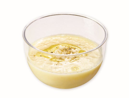 うどんや茶碗蒸しのように、お寿司と一緒に楽しめるスープとして開発。ソテーした玉ねぎの甘みをしっかりと味わっていただけるようクリームベースのスープに仕上げました。玉ねぎの食感を残すことで、とろっとクリーミーな味わいの中に、玉ねぎの旨みがぎゅっと詰まった冷製スープです。
