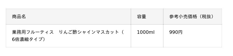 ■ 商品詳細 : 「フルーティス りんご酢シャインマスカット」 (6倍濃縮タイプ)