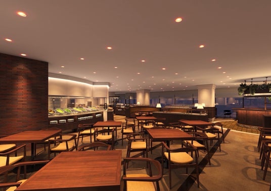 リニューアルする「ダイニングキッチン 九曜杏(くようあん)」は、街に開かれたダイニングをテーマに、幅広いお客様に様々なシーンでお楽しみいただけるよう、親しみやすい洋食料理を中心に提供します。朝食ブッフェでは熊本名物の郷土料理も多数登場し、ランチやディナーではオープンキッチンでシェフが目の前で仕上げるライブ感溢れる料理を提供。地元契約農家から届く新鮮野菜や阿蘇のあか牛、天草の魚介など、熊本の豊かな食文化を再発見できるメニューをラインナップいたします。