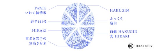 ロゴマークは、岩手県発の企業であり、現在では世界的に活躍の場を広げる株式会社ヘラルボニーとともに制作。ロゴマークに使用した作品は、ヘラルボニー契約作家で岩手県在住の作家・小林 覚(こばやし さとる)氏(るんびにい美術館在籍)がこのために描き下ろしたものです。岩手にゆかりのある企業・作家によるコラボレーションは、「白銀のひかり」が岩手から誕生したブランドを象徴しています。