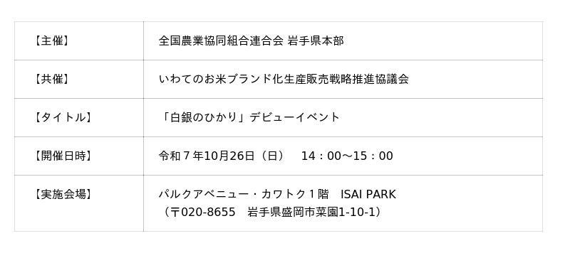この度、新たな岩手県オリジナル品種"白銀のひかり"のデビューを記念し、盛岡市内でデビューイベントを開催しました。