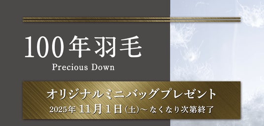 対象:100年羽毛シリーズ税込¥44,000以上(肌掛け含む)の商品をお買い求めいただいたお客様