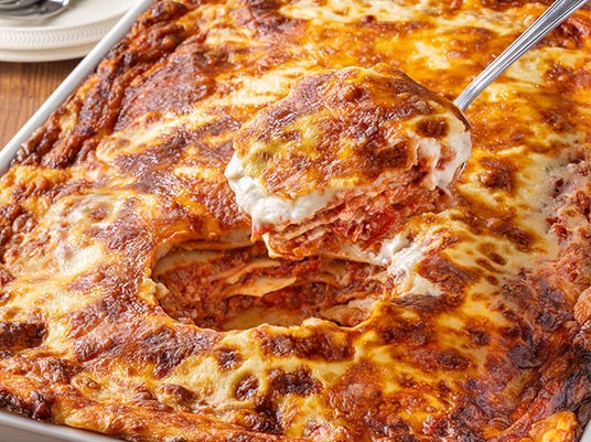 平たいパスタにたっぷりのミートソースとホワイトソースを重ね、店内キッチンで焼き上げました。