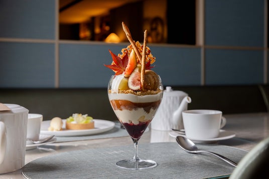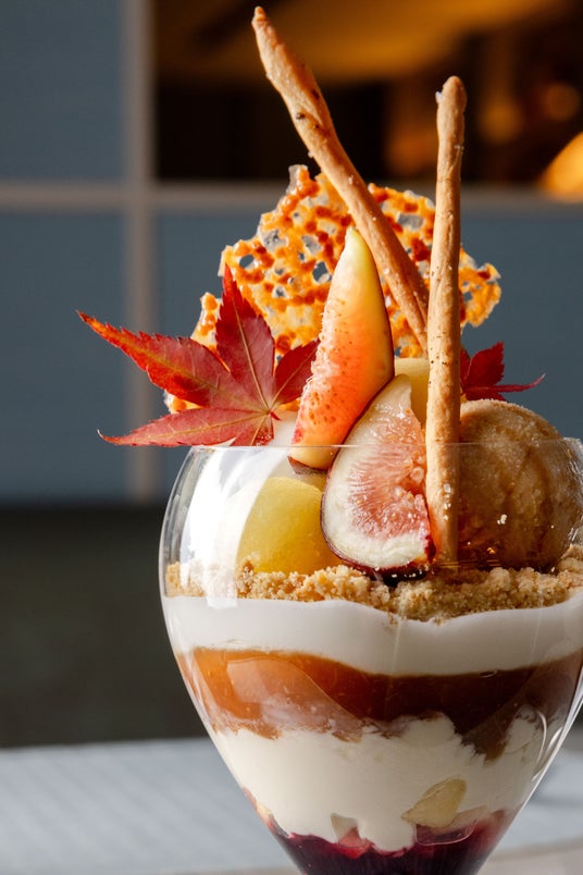 【アルマーニ / カフェ 表参道】香りと味が織りなす、深まる秋の、11月限定「紅玉 イチジク キャラメル 赤ワインのパフェ」