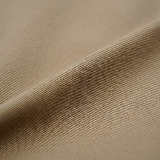 高密度ギャバジンにニドムバイオ加工を施した、ふくらみのある柔らかな風合い。経糸にGIZAコットン、横糸にスーピマコットンを使用。