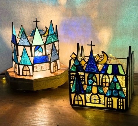 「ヒトスミ」ステンドグラス 左) 49,500円 右) 47,850円 まるで絵本から抜け出したようなデザインと、優しい光が魅力のステンドグラスの作品。