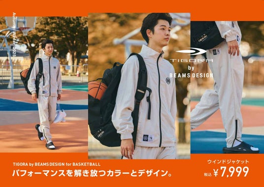 「BASKETBALL」シリーズは、バスケットボールに因んだワードを使用したオリジナルグラフィックや、ボールモチーフのロゴを採用。また、シューズを履いたままで着脱可能なウインドパンツなど、プレイヤー視点で考えたデザインがパフォーマンスを向上させます。