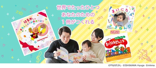 お話の中にお子さまの名前や写真、メッセージなどを入れてカスタマイズし、世界で1冊だけのオリジナル絵本が作れるサービスです。お子さまを主人公にした絵本は、お子さま自身にとっても、ご家族にとっても特別な1冊に!