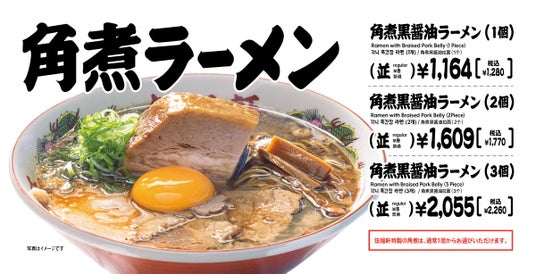 期間中は、1個100gの存在感ある角煮を豪快に盛り付けた「角煮ラーメン」をご提供。丼いっぱいに広がる角煮のボリュームと、肉本来の旨みが味わえる贅沢な一杯は、見た目にもインパクト大。