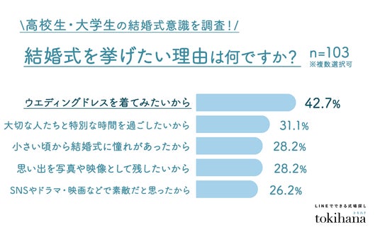 一方で、「結婚式を挙げたくない」理由のトップは「人前に立つのが恥ずかしい・苦手だから」であり、学生世代においても"主役になること"への抵抗感が根強いことが明らかになりました。