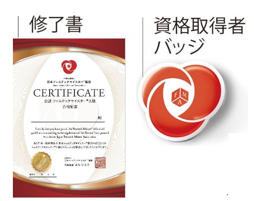 公認フェムテックマイスター(R)資格取得講座は、女性に起こりうる健康課題と対処法について知識を深める資格です。女性のカラダの仕組みや女性特有の病気・お悩みについての知識を学びたい方や、パートナーとの相互理解を深めたい方におすすめです。講座を受講し、所定のレポートを提出することにより資格が認められ、修了書と資格取得者バッジが付与されます。